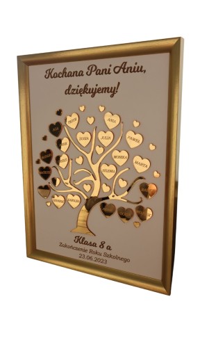 - drzewko ze złotej lustrzanej plexi, grawer laserem na serduszkach.