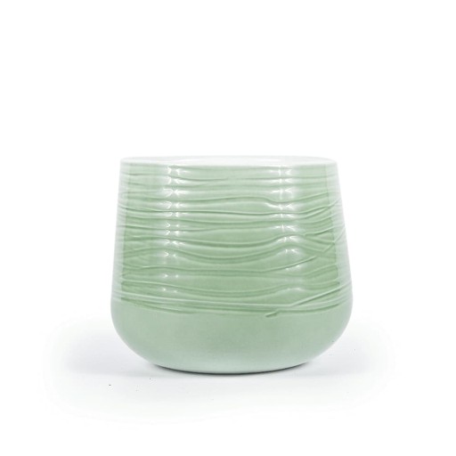 Osłonka ma u spodu delikatne zaokrąglenie, od którego brzegi powoli zaczynają się pochylać ku sobie. Wewnątrz osłonka pokryta jest białym szkliwem, które przechodzi w szałwiowe zielone na zewnątrz. Powierzchnia osłonki poprzecina jest nieregularnymi wgłębieniami, które przywodzą na myśl pustynny krajobraz wydmowy.