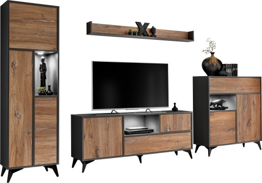 Prosty kształt, stylowy design, antracytowe akcenty oraz ledowe podświetlenie - oto Venice SET w pigułce. Nie bez powodu jest on gwiazdą modnych salonów. Pełni jednak nie tylko funkcję dekoracyjną, ale także praktyczną. Pozwala ujarzmić panujący w pomieszczeniu bałagan. Dzięki temu Twoja multimedialna przystań będzie nie tylko pięknie zaaranżowana, ale i uporządkowana. Ponadto matowe wykończenie sprawi, że wszelkie zabrudzenia jak kurz nie będą widoczne.