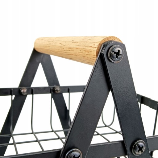 KOSZYK DWUPOZIOMOWY KOSZ NA OWOCE OZDOBNY METALOWY CZARNY DREWNIANA RĄCZKA