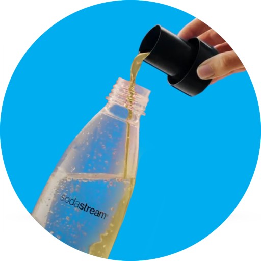 1. Przygotuj butelkę z zimną wodą. 2. Włóż ją do ekspresu SodaStream i nagazuj, naciskając przycisk 5 do 7 razy. 3. Napełnij korek dozujący syropem do linii pomiarowej i wlej do butelki. 4. Zakręć butelkę i lekko potrząśnij. Gotowe!