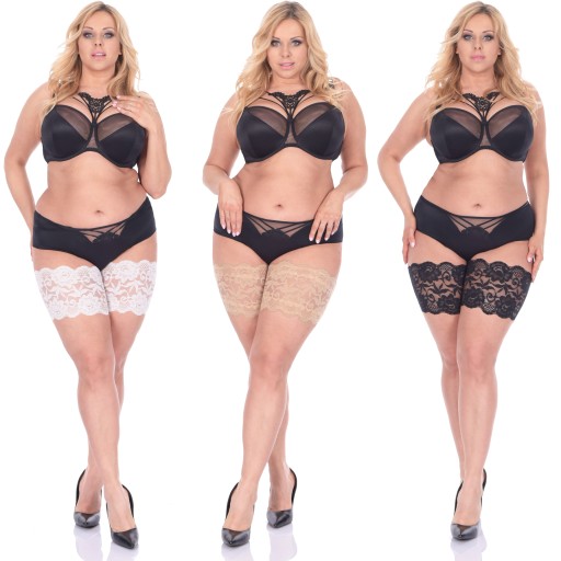 Włoskie, samonośne, koronkowe, ozdobne opaski przeciw otarciom ud . Antycellulitowe, opinające i wygładzające linię ud