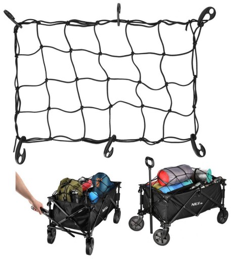NC1600 marki NILS CAMP to siatka turystyczna, która jest kompatybilna z wózkami turystycznymi, ale również nadaje się jako siatka na zakupy czy siatka na bagażnik rowerowy.