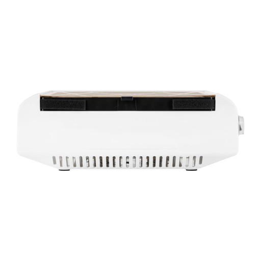 Duża powierzchnia wchłaniania pozwala na trzymanie nad urządzeniem obu dłoni naraz, a dzięki znacznej wydajności pochłaniacza zanieczyszczenia są wchłaniane wprost do filtra, pozostawiając stanowisko pracy czyste i wolne od szkodliwego pyłu. Odpowiednio rozmieszczone od spodu urządzenia otwory wentylacyjne zapewniają swobodny przepływ powietrza. Wentylator może dzięki temu pracować nieprzerwanie przez dłuższy czas, minimalizując ryzyko przegrzania.