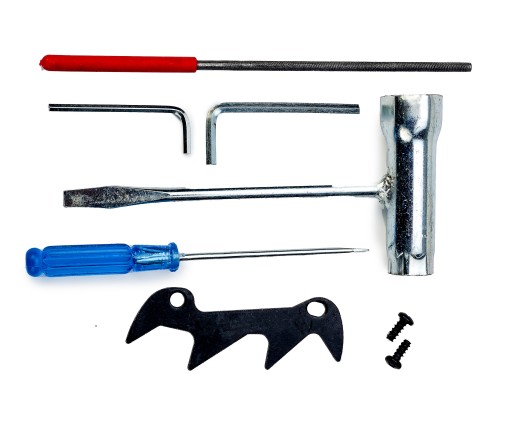 - Zestaw kluczy (klucz do świec oraz prowadnicy, wkrętak, imbusy)
