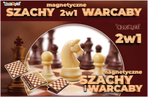 Wersja 2w1 szachy i warcaby pięknie wykończone i opakowane gwarantują wysoki poziom rozgrywki. Szachownica o wymiarach 31 x 31 cm jest składana na pół i zamykana. Pionki są przyciągane do szachownicy na magnes, można je przechowywać w składanej planszy.