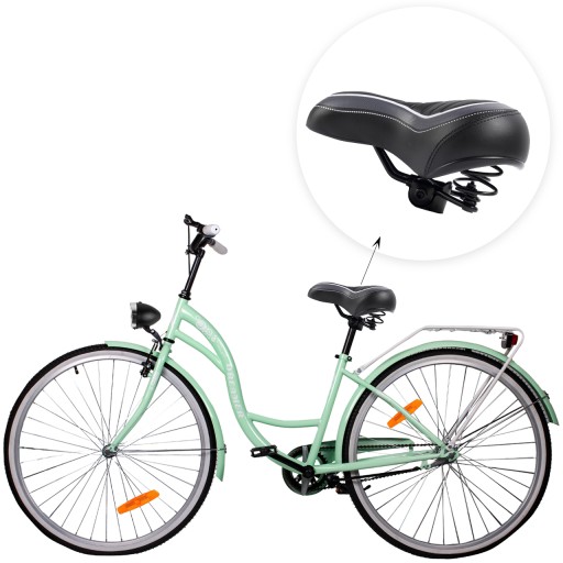 - Siodełko rowerowe pokryte skórą syntetyczną, która zapewnia elegancki wygląd, a także sprawia, że są wodoodporne.