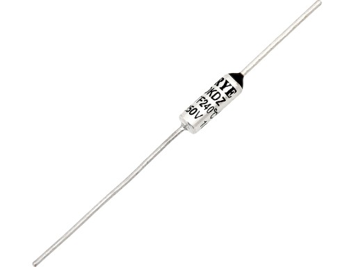 Bezpiecznik termiczny z wyprowadzeniami osiowymi. Wykonany z hermetycznej metalowej obudowy. Aktywacja bezpiecznika następuje, gdy temperatura otoczenia przekroczy punkt topnienia elementu zabezpieczającego.