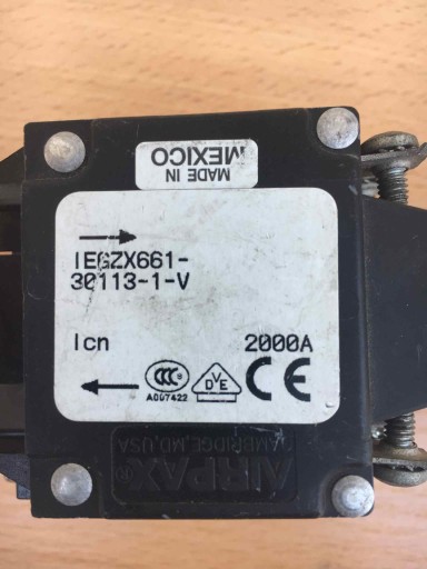 Używany, w pełni sprawny, panelowy wyłącznik automatyczny amerykańskiej firmy AIRPAX, model IEGZX661-30113-1-V