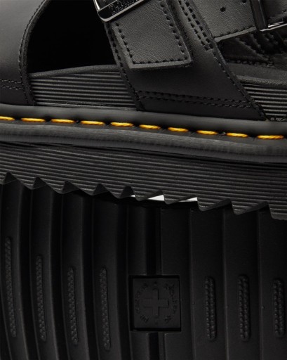 Oryginalne sandały z kolekcji obuwia Dr. Martens. Linia #ZEBRILUS. Wykonane z czarnej skóry naturalnej o matowym wykończeniu. Zapinane na dwa regulowane paski z metalowymi klamerkami. Profilowana wkładka. Wyjątkowo lekka podeszwa, doszywana do wierzchu buta przy pomocy słynnej, żółtej nici (technologia Goodyear Welted). Wysokość podeszwy: przód - 3,00 cm, tył - 4,00 cm.