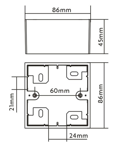 - wymiary zewnętrzne puszki 86 x 86 x 45 mm