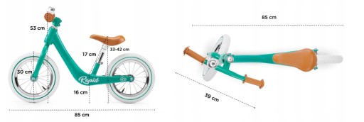 Taki jest właśnie RAPID. To rowerek biegowy dla najmłodszych wielbicieli miejskich wycieczek oraz parkowych przygód. Dopracowany w każdym szczególe wyróżnia się nie tylko stylistyką retro, ale także wieloma praktycznymi rozwiązaniami – ma duże, pompowane i łożyskowe koła (30 cm średnicy), a ergonomiczne siodełko zapewnia duży zakres regulacji wysokości. RAPID ma także ograniczony skręt kierownicy, co chroni dziecko przed niekontrolowanym skrętem podczas jazdy.