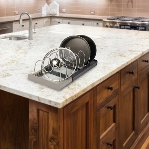 🚩 Organizer pozwoli uporządkować różne akcesoria kuchenne takie jak: pokrywki do garnków, patelnie, garnki, deski do krojenia,czy brytfanny do zapiekania, itp.