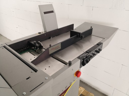 Dodatkową funkcją jest bigowanie i perforowanie rolowe arkuszy z pneumatycznego podajnika (po dokupieniu niedrogich rolek perforujących / bigujących), bardzo szybka praca.
