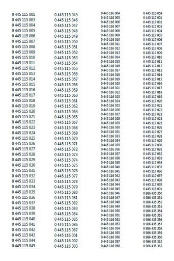 PASUJE DO WTRYSKIWACZY PIEZOELEKTRYCZNYCH BOSCH Z LISTY PONIŻEJ