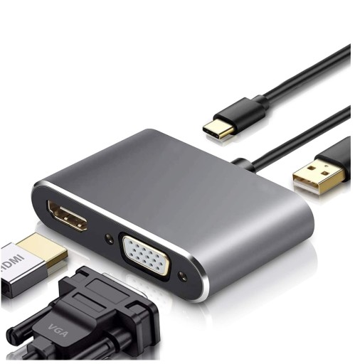 Poręczny adapter, idealny gdy często się przemieszczasz i potrzebujesz podłączyć laptop lub tablet do telewizora, monitora, bądź projektora. Oferuje wyświetlanie obrazu z portu HDMI / VGA dla urządzeń z wejściem USB typu C, który obsługuje przesyłanie obrazu.