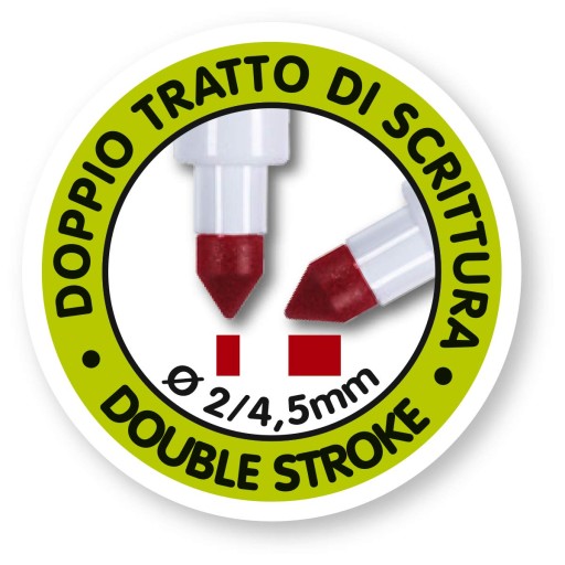 Stożkowa końcówka umożliwia kreślenie linii o grubości 2 mm - 4,5 mm. Flamastry Fibracolor są nietoksyczne, dodatkowo - w trosce o bezpieczeństwo najmłodszych dzieci - posiadają wentylowane zatyczki.