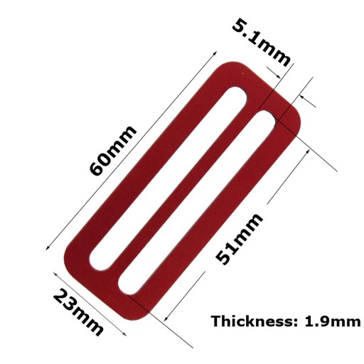 Długość: 6 cm/2.4 cala; szerokość: 2.3 cm/0.9 cala; szerokość szczeliny: 5.1mm/0.2 cala; Grubość 1,9 mm