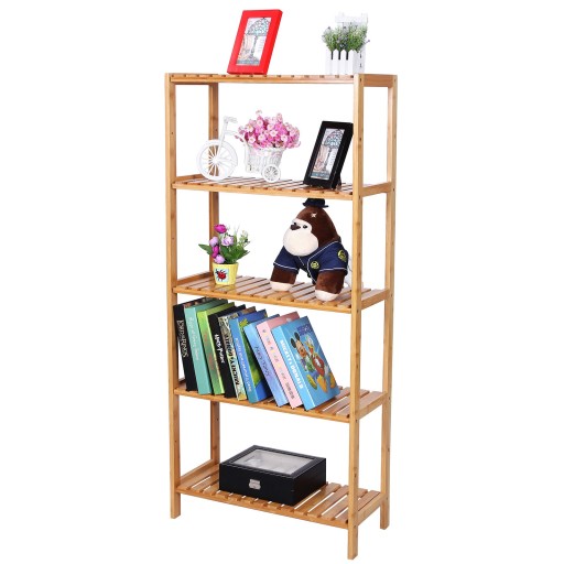 Wielofunkcyjny regał bambusowy z 5 poziomami.