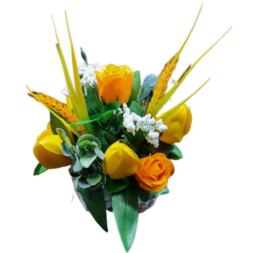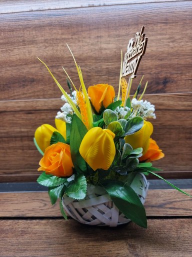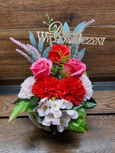 Na sprzedaż oferujemy kompozycję kwiatową - bukiet z kwiatami mydlanymi, które nie tylko udekorują wnętrze, ale również zapełnią je delikatnym i przyjemnym zapachem. Kompozycja została wykonana z wysokiej jakości materiałów, co gwarantuje trwałość i estetyczny wygląd.