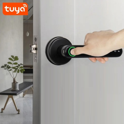 KLAMKA SZYFROWA ELEKTRONICZNY ZAMEK DO DRZWI KLAWIATURA NA KOD + ODCISK PALCA + PIN