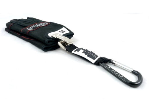 Podręczny i funkcjonalny uchwyt, dzięki któremu nie zgubisz rękawic i zawsze znajdziesz je w zasięgu ręki. Aluminiowy karabinek sprawia, że bez problemu zawiesisz go na szlufce przy pasku, dodatkowo mocny metalowy klips zapewnia łatwe zaczepienie rękawic, natomiast gumowe wykończenie zapobiega niszczeniu się materiału.