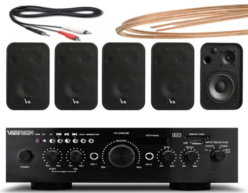 Zestaw ten świetnie nadaje się do instalacji audio w salonach, biurach, sklepach, halach, gabinetach, restauracjach, kawiarniach, poczekalniach, itp. Wzmacniacz posiada wbudowane radio FM wraz z gniazdem USB oraz czytnikiem kart SD.