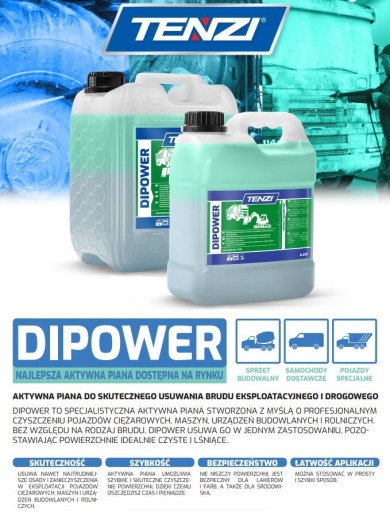 DIPOWER od TENZI to dwufazowa piana aktywna, która sprawia, że mycie silnie zabrudzonych, twardych powierzchni staje się przyjemnością. Produkt przeznaczony jest do ciężkich zabrudzeń z wszelkiego rodzaju pojazdów. Nie zawiera fosforanów.