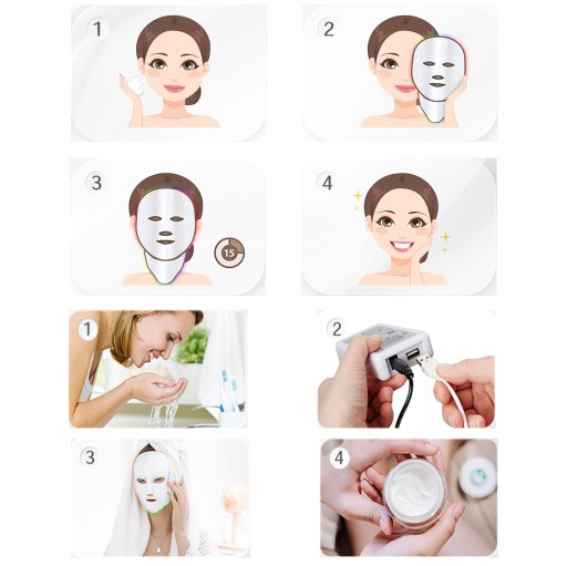 - Włącz maskę i zrelaksuj się, podczas gdy światła LED przenikają przez skórę.