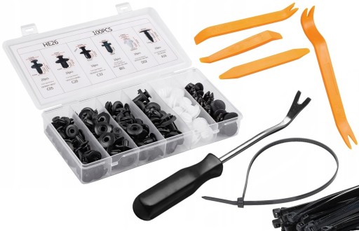 - Zestaw 100 uniwersalnych spinek samochodowych.