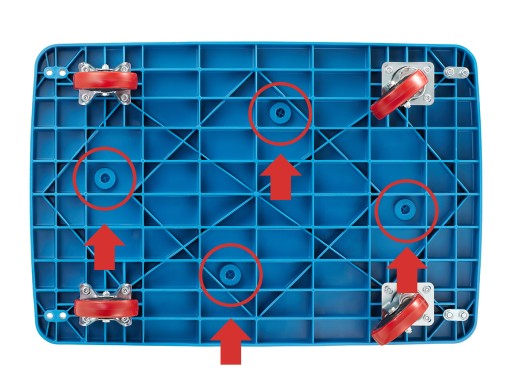 Jak często podczas jazdy wózkiem magazynowym zdarzyło Ci zbierać ładunek z podłogi czy chodnika bo nie miałeś jak go zabezpieczyć? Znamy ten problem. To właśnie dlatego nasz wózek wyposażyliśmy w specjalne otwory do zamocowania ładunków umieszczone symetrycznie na czterech bokach platformy. Rozwiązanie jest proste - gdy potrzebujesz odkrywasz mocowania, aby z nich skorzystać, jeśli ich nie potrzebujesz wystarczy zaślepić otwory.
