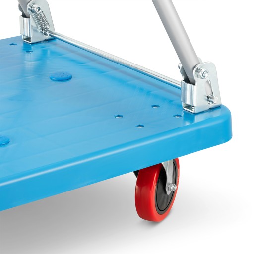 Przetłoczenia w tańszych wózkach stalowych nie są do końca wystarczające i dochodzi często do deformacji platformy co wyklucza później użytkowanie takiego produktu. Platforma szkieletowa z polimerowego tworzywa sztucznego rozwiązuje całkowicie ten problem, aby wózek mógł służyć przez wiele lat.