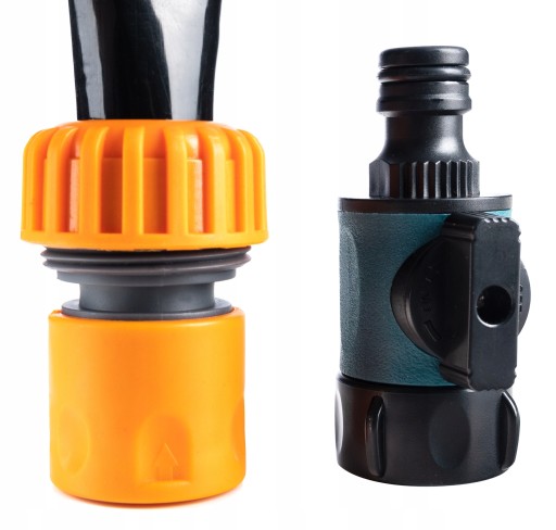 Wąż o długości aż 12m z zaworem kulowym umożliwiającym płynną regulację przepływu wody mocowany jest bezinwazyjnie za pomocą opasek zaciskowych dołączonych do zestawu.