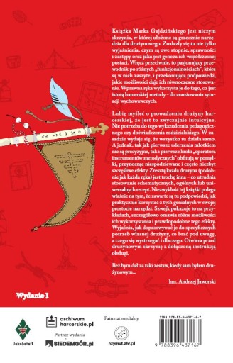 (…)Lubię myśleć o prowadzeniu drużyny harcerskiej, że jest to zwyczajnie intuicyjne. Nie potrzeba do tego wykształcenia pedagogicznego czy doświadczenia rodzicielskiego. W zasadzie wydaje się, że wszystko tu działa samo. A jednak, tak jak pierwsze uderzenia młotkiem nie są precyzyjne, tak i pierwsze kroki „operatora instrumentów metodycznych” obfitują w pomyłki, przynosząc niespodziewane i często niezbyt szczęśliwe efekty. Zresztą każda drużyna (podobnie jak każda ręka) jest trochę inna – co utrudnia stosowanie schematycznych, ogólnych lub uniwersalnych recept. Niezwykłość tej książki polega właśnie na tym, że zawarte są tu podpowiedzi, jak praktycznie korzystać z tych genialnych w swojej prostocie narzędzi. Szwejk pokazuje to na przykładach, szczegółowo omawia różne możliwości ich wykorzystania i prawdopodobne tego efekty. Wyjaśnia, jak dopasowywać je do specyficznych potrzeb własnej drużyny, co brać pod uwagę, a czego się wystrzegać i dlaczego.
