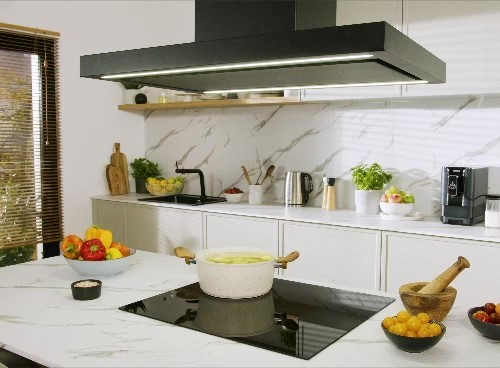 Najbardziej zaawansowana technologia połączenia płyty z okapem przy pomocy Bluetooth sprawia, że okap nie tylko włączy się automatycznie, ale również dostosuje swoją pracę do parametrów gotowania na płycie indukcyjnej. Zastosowany w urządzeniach inteligentny algorytm precyzyjnie monitoruje intensywność gotowania na płycie i na podstawie sczytanych danych dobiera moc okapu. Dodatkowo wbudowany w płytę intuicyjny panel pozwoli ci przejąć kontrolę nad pracą okapu i przejść na tryb manualny zawsze wtedy, gdy masz taką potrzebę. Technologia Bluetooth zapewnia stabilne połączenie — nie musisz się martwić, że zasłonisz jakiś czujnik pokrywą czy garnkiem. Wszystko dzieje się automatycznie, by zdjąć Tobie z głowy jak najwięcej!
