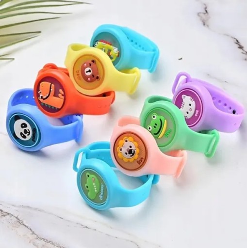 Opaska posiada podświetlenie LED po delikatnym stuknięciu w opaskę lub potrząśnięciu bransoletką CO SPRAWIA WIELKĄ FRAJDĘ DZIECKU!!!. Piękne pastelowe kolory, dziecięce wzory
