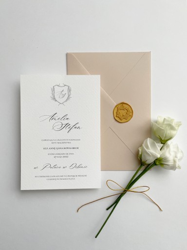 Zaproszenie ślubne - Herb wchodzi w skład kolekcji papeterii Herb, czyli subtelne i eleganckie zamknięcie inicjałów pary młodej w herbie.