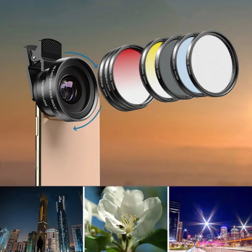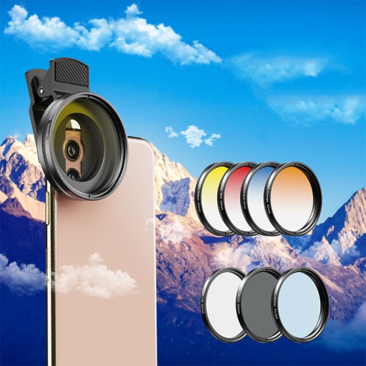 Twórz niesamowite zdjęcia i filmy za pomocą profesjonalnego zestawu filtrów Apexel 7w1 o średnicy 52 mm z serii Excellent Filter Kit, specjalnie zaprojektowanego dla smartfonów.