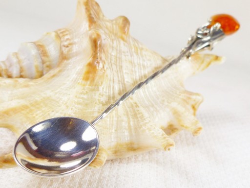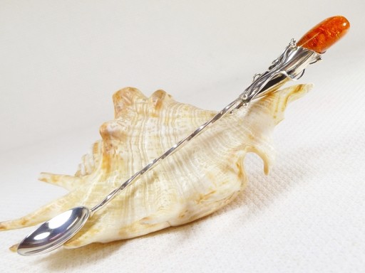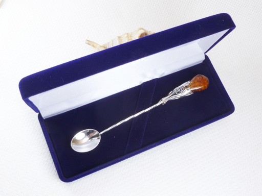 Łyżeczka srebrna z bursztynem, handmade 911-15