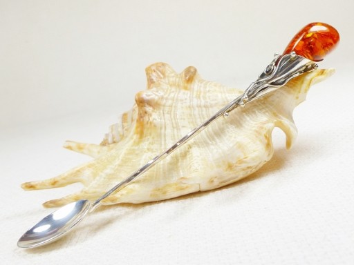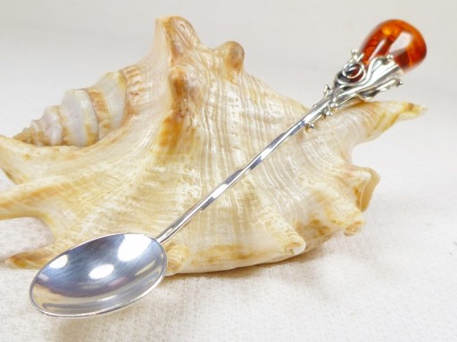 911/18 Łyżeczka Srebro z Bursztynem -HAND MADE-