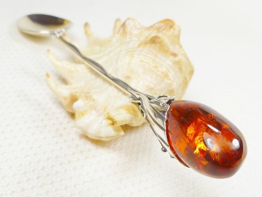 Łyżeczka srebrna z bursztynem naturalnym bałtyckim