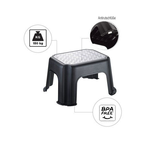 Niektóre rzeczy w życiu są dla Ciebie za wysokie? Stołek Rotho może to zmienić. Z jego pomocą możesz nawet dotrzeć do górnych szafek łatwo i bezpiecznie. Stołek ze schodkiem wykonany z wytrzymałego tworzywa sztucznego, ergonomiczna faktura, antypoślizgowe nóżki, do użytku w pomieszczeniach i do użytku na zewnątrz, Certyfikat GS. Zalety i możliwe zastosowania: Pojemnikiw ostatniej komorze szafki kuchennej, wazon na kwiaty na samej górze? Bez pomocy nie dosięgniesz tych przedmiotów? Lepszym rozwiązaniem niż chwiejne krzesła czy nieporęczne drabiny jest stabilny stołek firmy Rotho. Nie trzeba go mozolnie montować i demontować, ale jest szybko i łatwo dostępny - zarówno w pomieszczeniach, jak i w ogrodzie czy w piwnicy. Z jego pomocą nawet niscy ludzie z łatwością zmienią żarówki, zapną zasłony lub zetrą warstwę kurzu z wysokiej półki. Ze względu na dyskretną konstrukcję, stołek przykuwa wzrok w Twoim salonie.