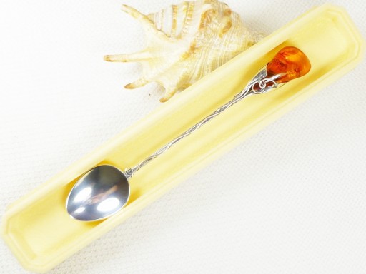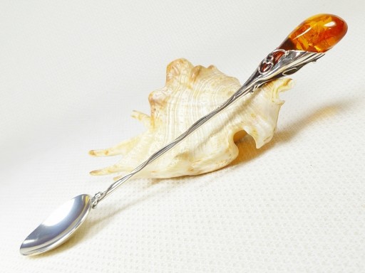 926/10 Łyżeczka Srebro z Bursztynem -HAND MADE-