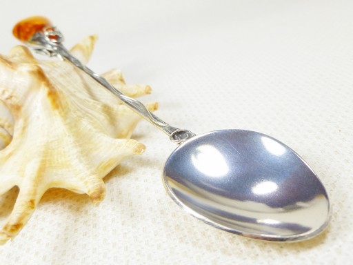 Łyżeczka srebrna z bursztynem naturalnym bałtyckim