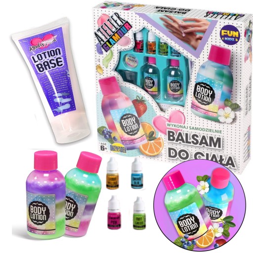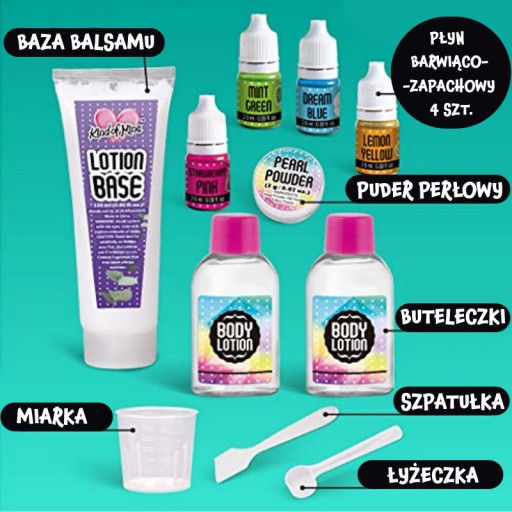 W zestawie znajduje się bogaty zbiór półproduktów, dzięki którym można stworzyć własny krem o ulubionym zapachu!