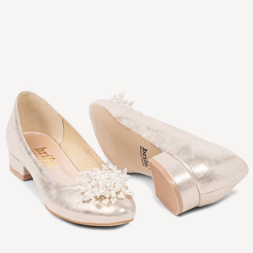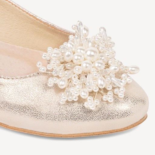 Ślubne połyskujące balerinki z perłową ozdobą Amaris złote
