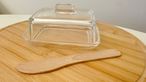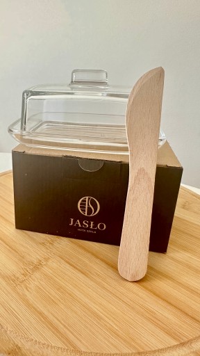 MASELNICZKA SZKLANA POJEMNIK NA MASŁO Z POKRYWĄ UCHWT JASŁO + nożyk gratis