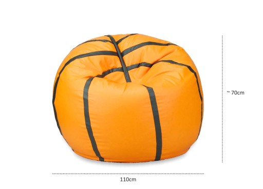 Przedmiotem aukcji jest piłka pufa "koszykówka" o pojemności 550L. Wersję kolorystyczną należy wybrać przy zakupie z dostępnych modeli z wzornika, bądź skomponować własną. Instrukcje dot. dobierania kolorów opisujemy w tekście poniżej. Wymiary pufy to 110cm szerokości, 110cm głębokości oraz 70cm wysokości. Należy pamiętać, że pufa jest meblem bezszkieletowym, dlatego jej wymiary mogą się zmieniać w zależności od wagi osoby użytkującej oraz ułożenia pufy. Pufa jest wypełniona wysokiej jakości granulatem EPS który posiada atest PZH. Polistyrenowe kulki swobodnie przemieszczające się wewnątrz pufy są surowcem wysokiej jakości, zapewniają wysoki komfort użytkowania zarówno dla dzieci jak i dorosłych. Materiał z którego została wykonana - ekoskóra dollaro, również posiada atest PZH.