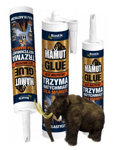 Klej montażowy uniwersalny firmy Bostik przeznaczony jest do stosowania zarówno na zewnątrz, jak i wewnątrz. Nie zawiera wody i rozpuszczalników. Klej mamut odznacza się natychmiastową przyczepnością bez konieczności podpierania klejonego elementu oraz szczególnie krótkim czasem schnięcia. Po utwardzeniu trwale sprężysty i wytrzymały.