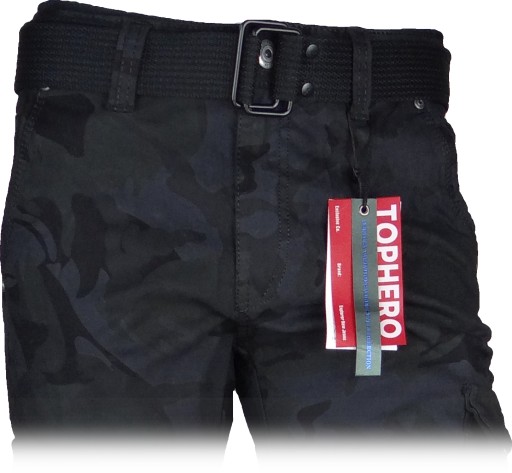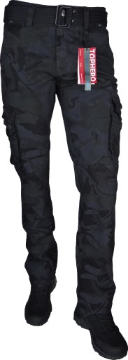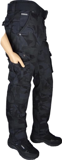 - Spodnie męskie w kolorze Czarnym Moro (dark camo) i paskiem w komplecie